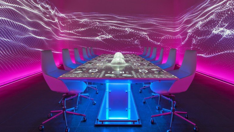Nas paredes do Sublimotion são projetados cenários que ajudam a transformar a refeição num espetáculo sensorial. (© Divulgação)